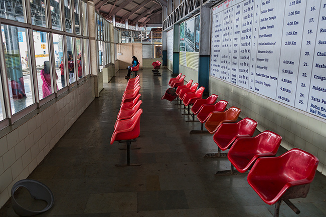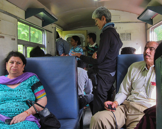 No clue but Sandra wanted to take the railway. I hate them slow trains in India. This one took over 6 (!!!) hours downhill for only 93 km! Wow – I could do that on my slowest bike faster. And since that is a toy train there was no space as well. And you have to wait in every other station for the trains that come up the hill. So if anything goes wrong with the train that is going up – your trip just got longer. At last plenty of food at some stations. We where not lucky with the weather. It was cloudy and foggy all the way so we could not really see if there is anything nice to see. Makes the whole ride even more frustrating.